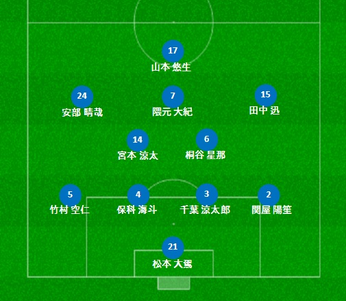 67分:山本悠生(17) ⇒ 酒田遙(11)